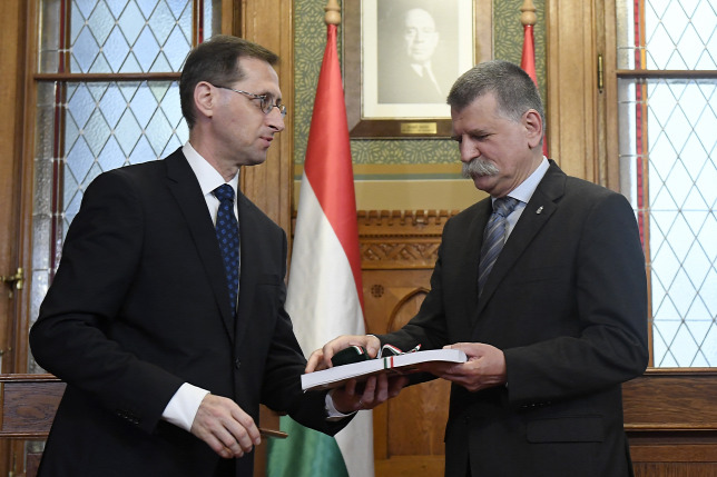 Varga Mihály pénzügyminiszter átnyújtja a 2020. évi költségvetési törvényjavaslatot Kövér Lászlónak, az Országgyűlés elnökénekForrás: MTI/Kovács Tamás