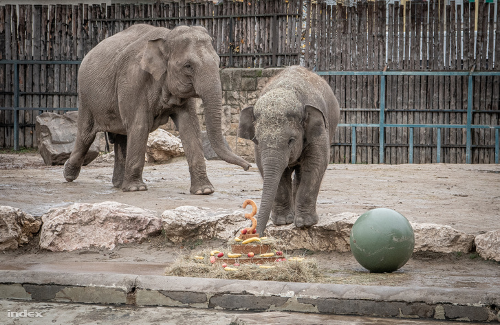 Arun vasárnap lesz 3 éves. Őt és Angele-t, a 19 éves anyukát (akinek a születésnapja viszont mára esik) együtt köszönte fel ma délben az állatkert vezetősége. Volt speciális születésnapi torta, és a kis Arun egy speciális labdát is kapott az Állatkerti Alapítványtól (ami kibírja, ha a már egy tonnánál is nehezebb kiselefánt játszik vele).
