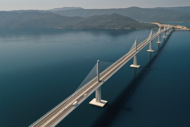 Felavatták kedden a horvátországi Peljesac hidat. A 420 millió eurós költséggel a kínai China Road and Bridge Corporation (CRBC) által megépített híd a szárazföld és a Peljesac-félsziget között ível át 55 méter magasságban a tengeröböl fölött, és így megteremti az összeköttetést Bosznia-Hercegovina tengerpartjának elkerülésével az attól északra és délre húzódó, Horvátországhoz tartozó Adria-parti területek között.