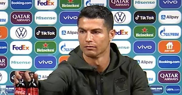 Emlékezetes jelenetet szült a Magyarország-Portugália Európa-bajnoki meccset megelőző hétfői sajtótájékoztató: közvetlenül a kezdés előtt Cristiano Ronaldo méla undorral az arcán elpakolta az elé készített két üveg Coca-Colát a kamerák elől, majd a magasba emelte az ásványvizes üvegét, és még bele is mondta a mikrofonba, hogy ő inkább vizet iszik, nem kólát.