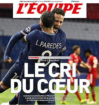 „Párizst bevették, Párizs mégis felszabadult!” – foglalja össze a lényeget a tekintélyes France Football. „Mekkora feszültség, micsoda meccs!” – lelkendezik a szaklap, a kolosszális jelzővel érzékeltetve, mekkora tettnek tartja a Barca és a Bayern egymást követő kiejtését. A PSG nem azzal a szándékkal lépett pályára, hogy őrizze az első meccsen megszerzett előnyt, viszont amikor a helyzetei ellenére a Bayern szerzett vezetést, és veszélyesre fordult a helyzet, játékosai meg tudták őrizni nyugalmukat, ami további álmodozásra jogosít – összegez az FF.