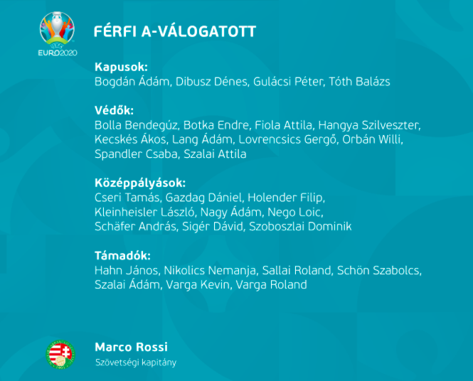 A középpályások között nincs újonc. Szoboszlai Dominik ott van a keretben, bár sérült, és egyáltalán nem biztos, hogy pályára tud majd lépni. Rossi szerint ugyanakkor akkora tehetség, hogy megérdemli az esélyt, majd kiderül, hogy milyen állapotban lesz.