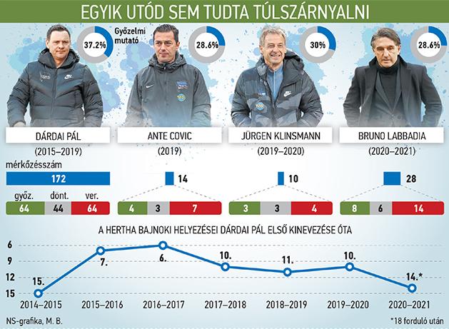 – Ezen a szinten gyorsan változhatnak a dolgok – ezt éppen az én friss példám is bizonyítja. A statisztika mindenesetre arról árulkodik, hogy ugyan még két esztendeje sincs annak, hogy felálltam a kispadról, azóta már négy trénert fogyasztott el a Hertha, átlagban fél év sem jutott egy edzőnek. Úgyhogy fél évnél tovább egyelőre én sem tervezek…