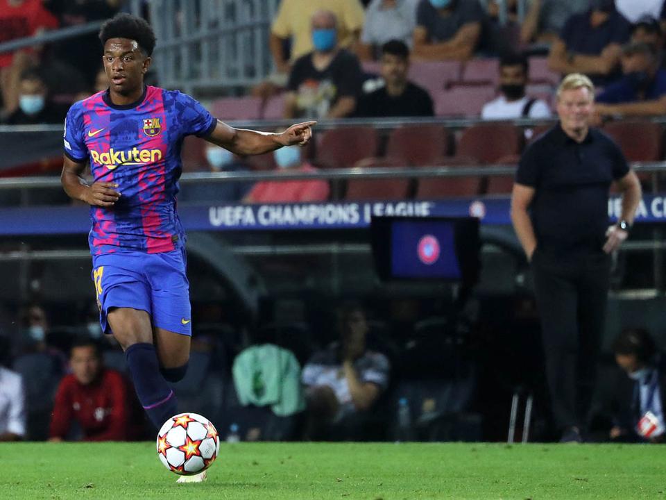 | A 17 éves Álex Baldé a Bayern ellen csereként már játszott a BL-ben, most a bajnokságban is megkapja a lehetőséget Ronald Koeman (a háttérben) vezetőedzőtől (Fotó: AFP, archív) |