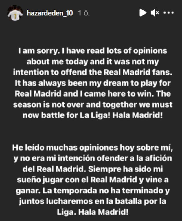 Amint arról beszámoltunk, nagy felháborodást váltott ki a Real Madrid szurkolóinak körében a csapat támadójának, Eden Hazard-nak a viselkedése, aki a Chelsea elleni szerdai BL-búcsút követően együtt nevetgélt a pályán korábbi londoni játékostársaival. Az esetet követően, csütörtök este a játékos a közösségi médiában kért elnézést.