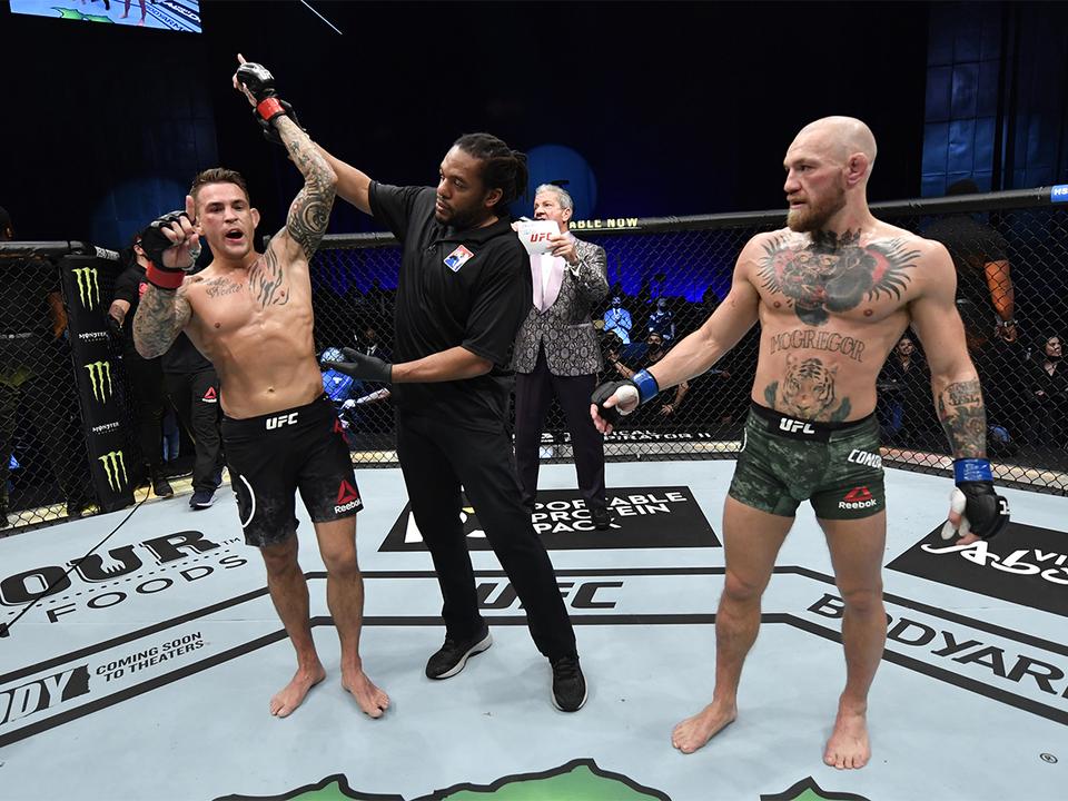 Az addig is aktívabb Poirier (McGregornak a lába is megsérült az amerikai rúgásaitól, a mérkőzés után mankóval távozott az öltözőből), aki korábban szintén kikapott Nurmagomedovtól, a második menetben az ütéseivel a ketrechez szorította a meccs előtt most is felettébb magabiztos, gyors kiütést ígérő McGregort. Az ír egy jobbegyenestől lement, majd a földön olyan ütészáport kapott, hogy a mérkőzésvezető leállította az egyenlőtlenné váló küzdelmet. Poirier TKO-val győzött.