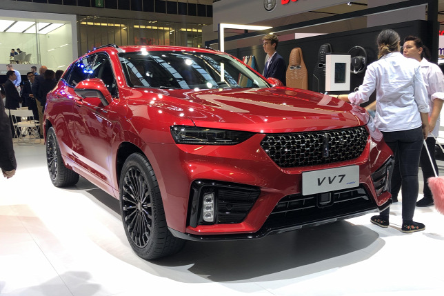 Az egyik nagy gyártó, a Great Wall SUV-márkája a WEY, amely elég tisztességes méretű standdal készült idén Frankfurtra, a mellettük lévő Ford például kisebb területet bérelt. A WEY egyféle modellt hozott, amit különféle csomagokkal más-más néven prezentált. A VV7 volt az alap, volt VV7 GT és GT Pro: egytől-egyig mind megdöbbentően igényes benyomást keltett. Igazából simán elhittem volna, hogy egy Mitsubishiben, Hondában vagy Nissanban ülök. Az anyagok rendben voltak, a forma bár kicsit jellegtelen, nem hasonlít semmilyen általam ismert autóra.