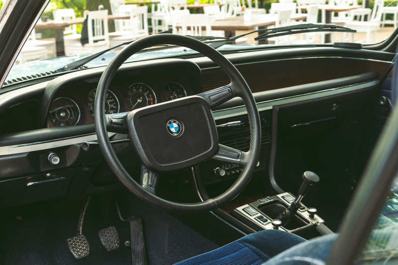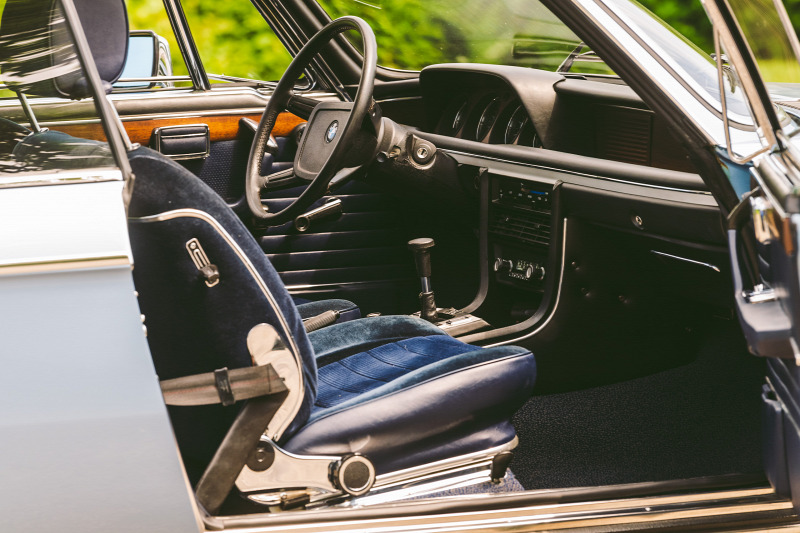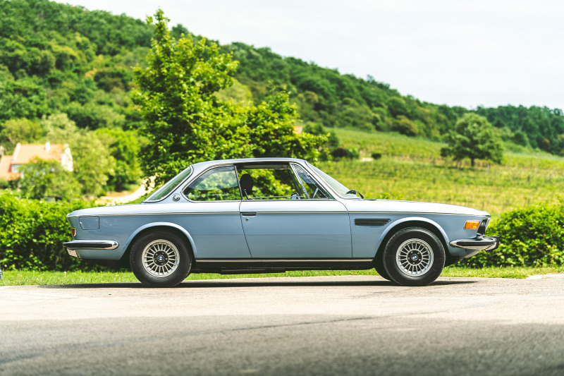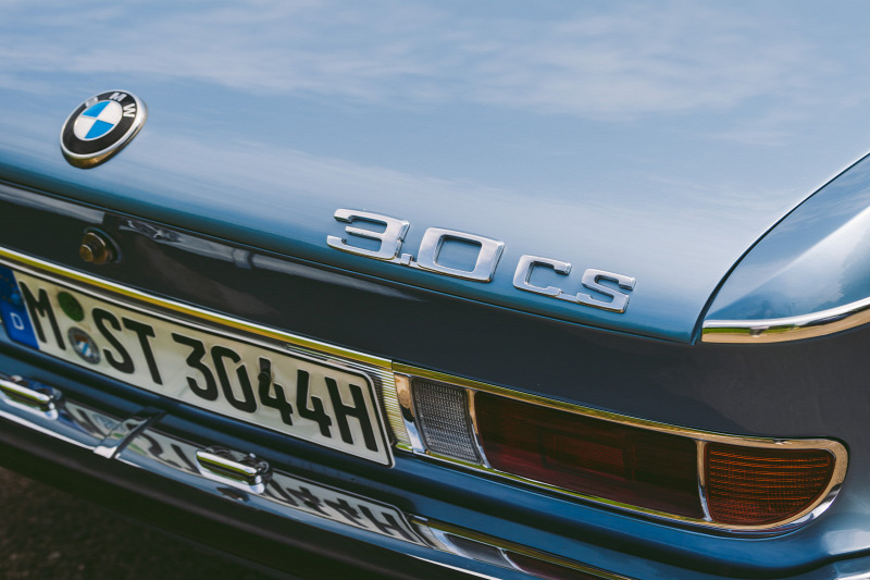 Én sem tudok betelni vele, ahogy Káptalantóti egyik régi kúriájának teraszán, háttérben a felfordított lavórként elnyúló Badacsony-heggyel: először megpillantom ikerfényszórós cápaorrát, krómléccel hangsúlyozott fürdőkádperemét, igézően terpesztő hátsó kerekeit és filigrán tetőtartó oszlopait. Összesen négy darab büszke BMW-embléma díszíti az utolsó évjáratból, 1975-ből származó, fjord-kék metál 3.0 CS testét(plusz a kerékkupakok), az oldalsó kettő jelvény a C-oszlop tövében akár korong is lehetne, amit épp odébb akarna ütni a jégen a márka legendás motívuma, a krómozott hokiütőt formázó díszléc.