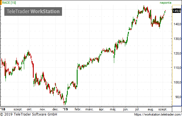 Az elmúlt napokban már elkezdték beárazni a befektetők az új sportautók érkezését, az augusztus végi mélypont óta már 9 százalékot emelkedett az árfolyam, ma viszont már alig reagált, jelenleg 0,3 százalék pluszban áll a Ferrari részvényárfolyama. Az autógyártó részvények között egyébként a Ferrari az év egyik nagy sztárja, tavaly év vége óta 71,7 százalékot emelkedett az árfolyam.