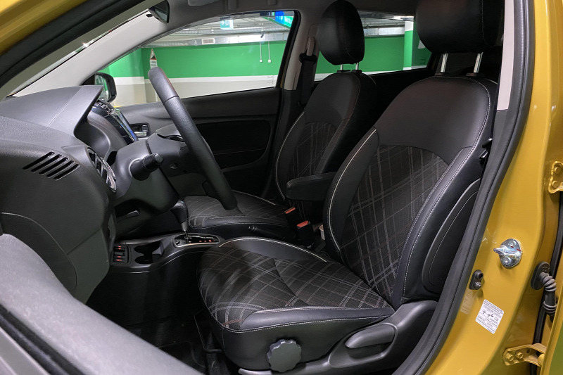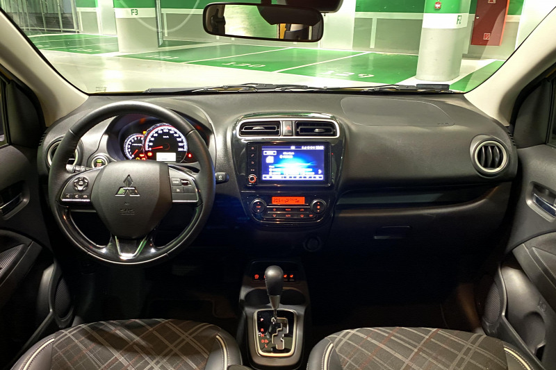 Beülve pont olyan, mint egy kisautó 2010-ből. Egyszerűek a formák, kopogósak a műanyagok, mégis olyan autószerű és ezért számomra otthonos az egész. Egyik kedvenc részletem a gyári szélterelő az ablakokon, az első autómon (3-as Golf) volt ilyen, hiszen klíma híján egész nyáron szellőztetni kellett. És az a váltókar… nagybátyám ős-Galantján kellett hasonló kulisszában a rejtélyes labirintust bejárni a bottal, gyerekként mitikus jelentőségűnek láttam az egészet. Persze a Space Star-ba már kulcs nélkül lehet bejutni, a motor gombbal indul, és szerencsére más jelek is utalnak arra, hogy 2022-t írunk.
