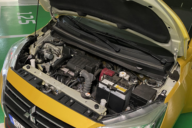 Tesztautónktól morcos külseje alapján sportosságot lehetne elvárni, de a Space Star csak egyféle motorral érhető el, ami egy 1,2 literes, szívó háromhengeres benzines, szerény 71 lóerővel és 102 Nm nyomatékkal. Hiába alig 910 kilós, százas sprintideje komótos 15,8 másodperc, amin lehet faragni, hogyha fokozatnélküli automata helyett kézi váltóval rendeljük, nem is beszélve az 500 ezer forintos felárról. Más szempontból meg voltam elégedve a simán működő CVT-vel, akárcsak a Mitsubishi fogyasztásával: 6 litert evett sietősen hajtva, de 5 liter környékén is beérte óvatosabb lábmunkával.