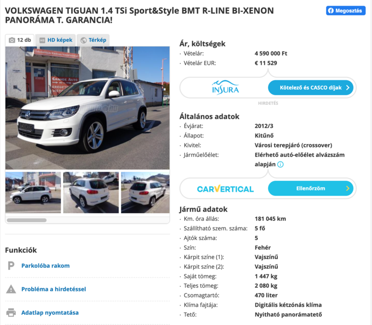 De van segítségem, aki szervizben be tudja vizsgáltatni az autót, erről adatlapot készítenek, valamint a hirdetésben is szerepel a CARVERTICAL opció. Délelőtt hívott, és a következő információkat kaptam tőle: ennek a modellnek a vezérműlánc a “gyenge pontja”, a megfelelő olaj és cseréjének intervalluma mellett.