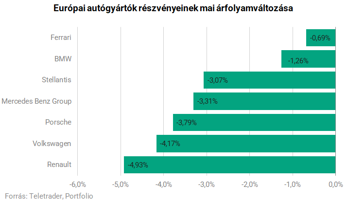 A szintén ciklikus autógyártók esetében sem különb a helyzet, az esést a Renault és a Volkswagen részvényei vezetik.