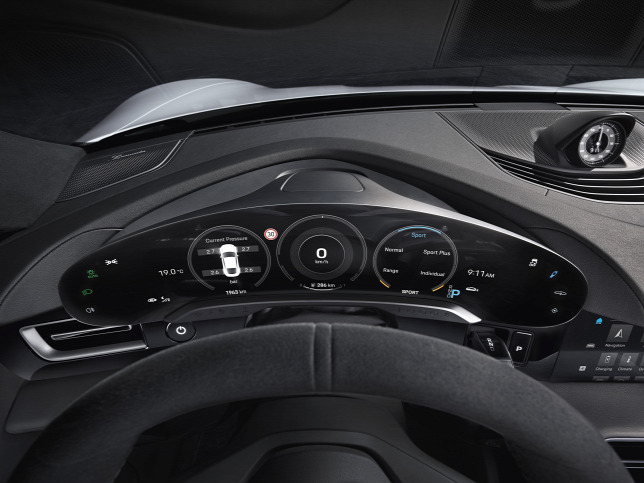 A vezető előtt konfigurálható, 16,8 colos digitális műszerfal trónol, akár a klasszikus ötórás dizájnt is be lehet állítaniForrás: Porsche
