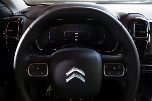 Mintha már a műszerfal grafikájával is azt szeretné üzenni a Citroën, hogy ennél az autónál nem a vezetés a lényeg, ne törődjünk a fordulatszámmal és a sebességgel, csak élvezzük a pihentető utazást. A C5 Aircross tényleg kényelmesebb, mint a konkurens SUV-ok többsége, és nem csak az ülések meg a helykínálat, hanem egy trükkös futóműalkatrész miatt is.