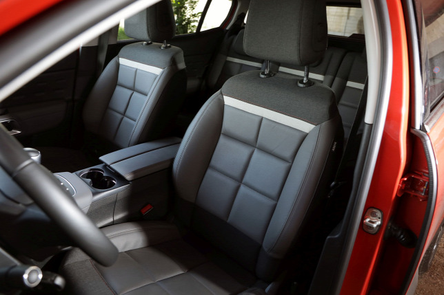 Elöl és hátul is hatalmas a hely, a csokitábla mintájú, kockás párnájú ülések annak ellenére jó oldaltartásúak és kényelmesek hosszabb távon is, hogy meglehetősen süppedősek, és a formázásuk sem bonyolult, mert sík felületekből állnak.