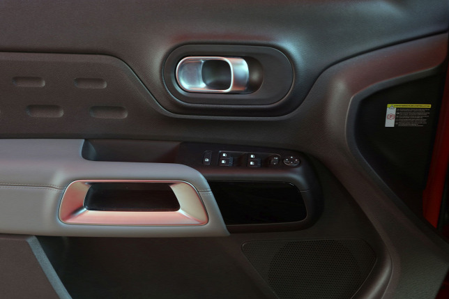 Az anyaghasználat néhol a prémiumautókat, néhol a Daciákat idézi, összességében elmondható, hogy szemmagasságban, ahová gyakran nyúl az ember, többnyire jó minőségű anyagokat tettek (a kilincs például fém), lejjebb és az ajtókon viszont olcsó, kemény burkolatokat találni. Annak ellenére otthonos a beltér, hogy a tesztautóban csak a fekete és a szürke ötven árnyalatát használták, mert a formák vidámak, nagyok az ablakfelületek, és a 355 ezer forintos üvegtető is rengeteg fényt enged be.